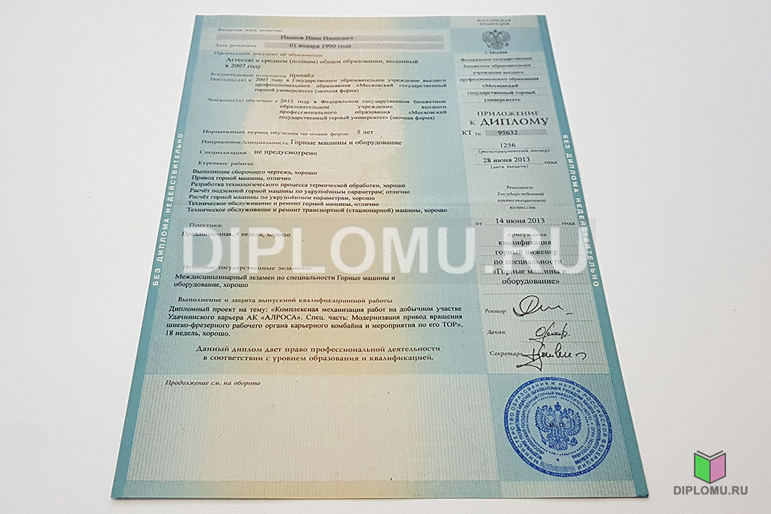 На нашем сайте Вы можете купить диплом об окончании любого ВУЗа России в 2012 или 2013 году. Ниже представлены фото документа и его цена. Наши специалисты заполнят диплом по всем правилам, установленным Министерством образования и науки РФ. Заверяеются «мокрыми» печатями и нужными подписями. Обращайтесь, сделаем быстро и качественно!